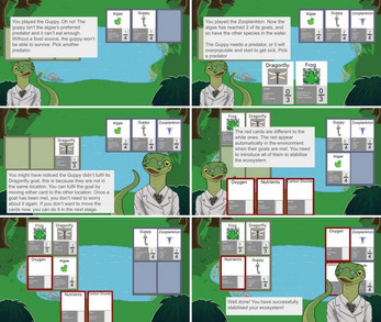 This game lets the player to learn how the ecosystem and the residing species are interconnected with each other, we went with a very simple food web for this. We wanted the player to have an experience of a simulation game with the mechanics of a card based game.